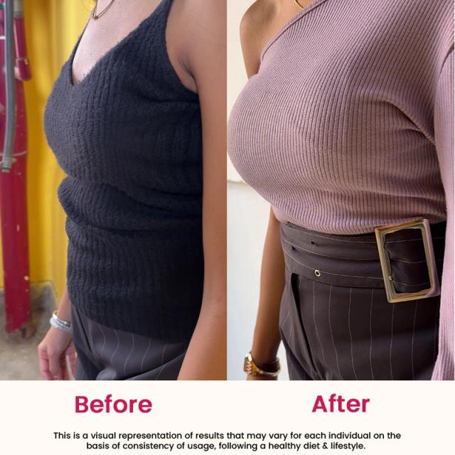 Herbs when paired with yoga & exercises like Dhanurasana,Bhujangasana, Ustrasana boost the process of increasing size and uplifting loose skin.