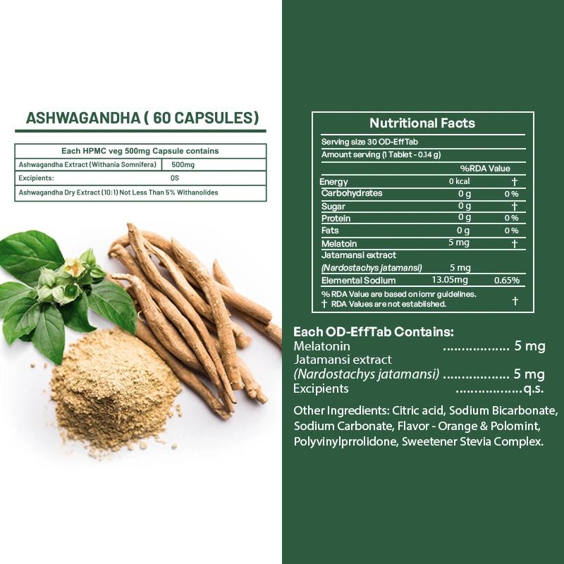 Ayuvya Magical Sleep and Ashwagandha Tablets combo is made with natural ingredients to naturally help with deep, uninterrupted sleep, reducing stress and boosting energy levels throughout the day.