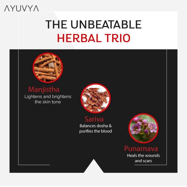 Manjistha extract, sariva extract, and 10 other herbs