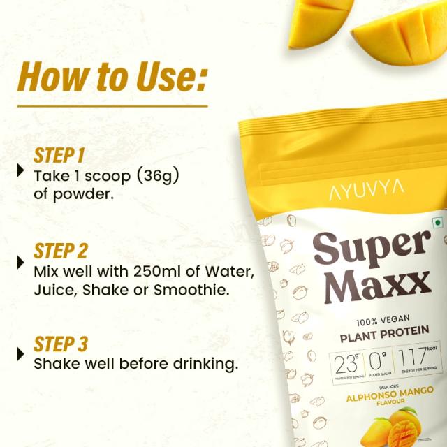 Ayuvya SuperMaxx Plant Protein Powder (Mango Flavour) | 500g